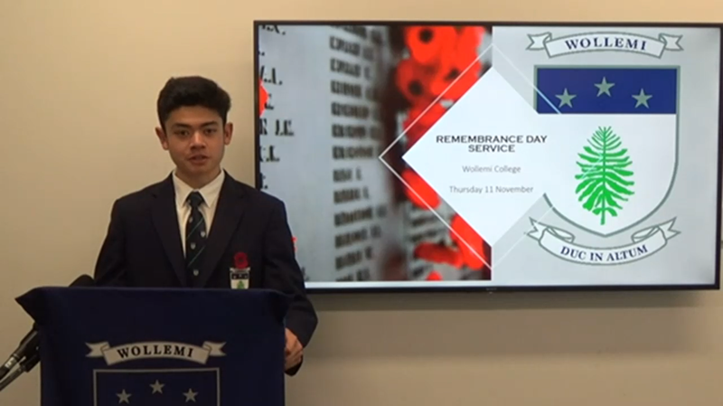 At the eleventh hour of the eleventh day of the eleventh month, the Wollemi school body remembered all our fallen servicemen and women who have sacrificed much for our nation. The service began with a prayer led by our school chaplain Father Sam and our School Captains. It was a solemn occasion despite being online, lest we forget.