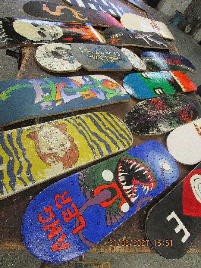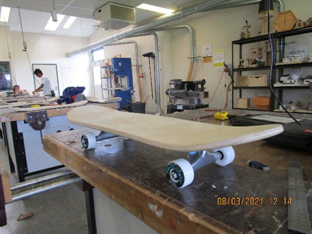 Year 9 & 10 students designed a skateboard from inception, setting up the mould, layering and gluing plywood sheets, using workshop tools to shape and sand the decks and finally designing a skateboard graphic by hand or by photo-transfer technique. The students showed their creativity and design skills meeting deadlines and completing a portfolio to showcase their design process. Limitless, well-done boys!