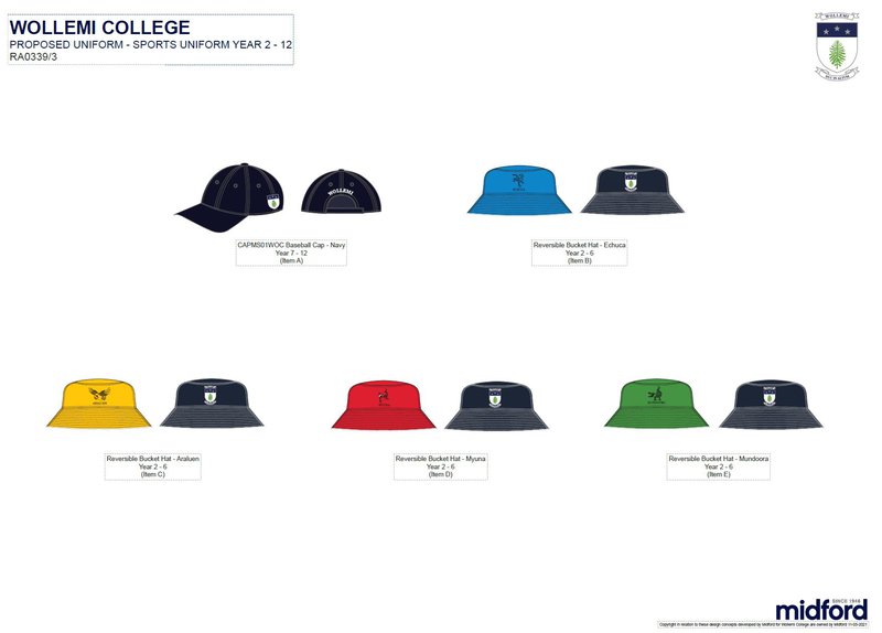Midford sells hats for Primary and Secondary students. These may also be purchased from the Front Office. It is also permissible for secondary students to wear a Wollemi sports club cap.