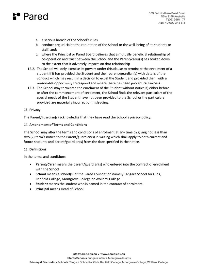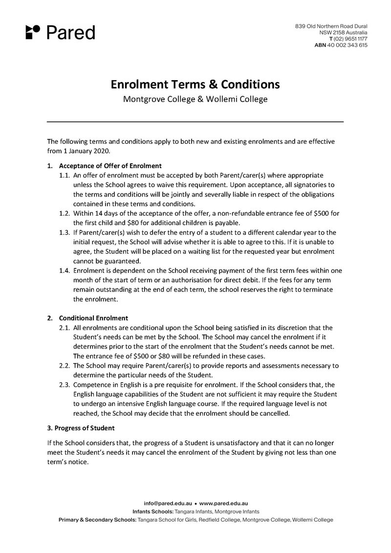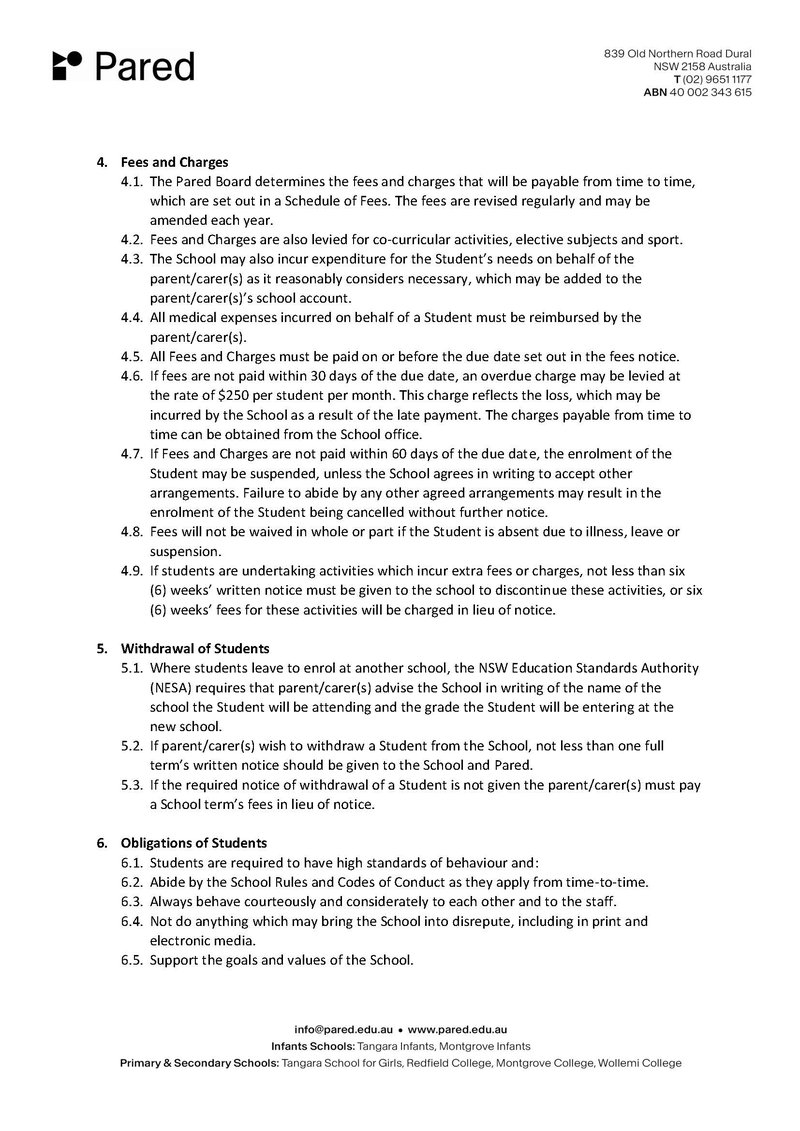 ·Where fees and levies continue to be overdue for more than 21 days, the student will not be permitted to return to school for another term if the fees for the previous billing are unpaid.