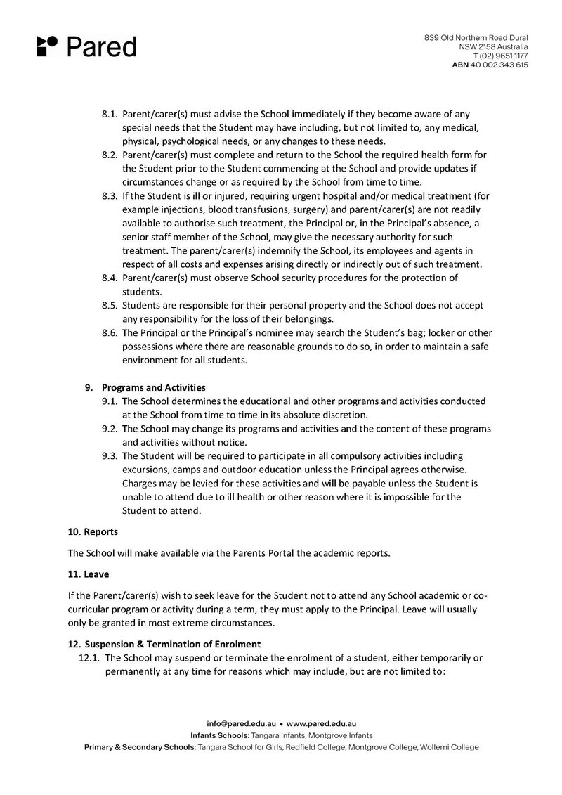 In relation to more disciplinary matters which may result in suspension or expulsion the School will inform parents of the matter and will deal with it in accordance with the School's disciplinary policy. While parents will be consulted, the final decision will be the School's.