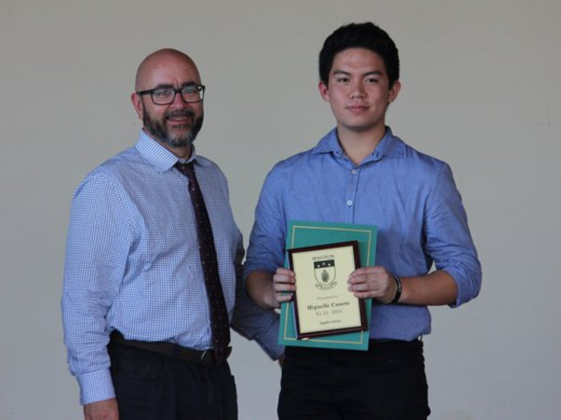 Our next award is the College Dux. And allow me to indulge in a personal anecdote. In Year 11 Yohann made the Hillzone representative basketball team that I coach, and the other coaches would always say “Yohann is a natural.” Yohann was athletic, coordinated, and to the envy of many of us Filipinos, relatively tall. Making the Hillzone team seemed natural.