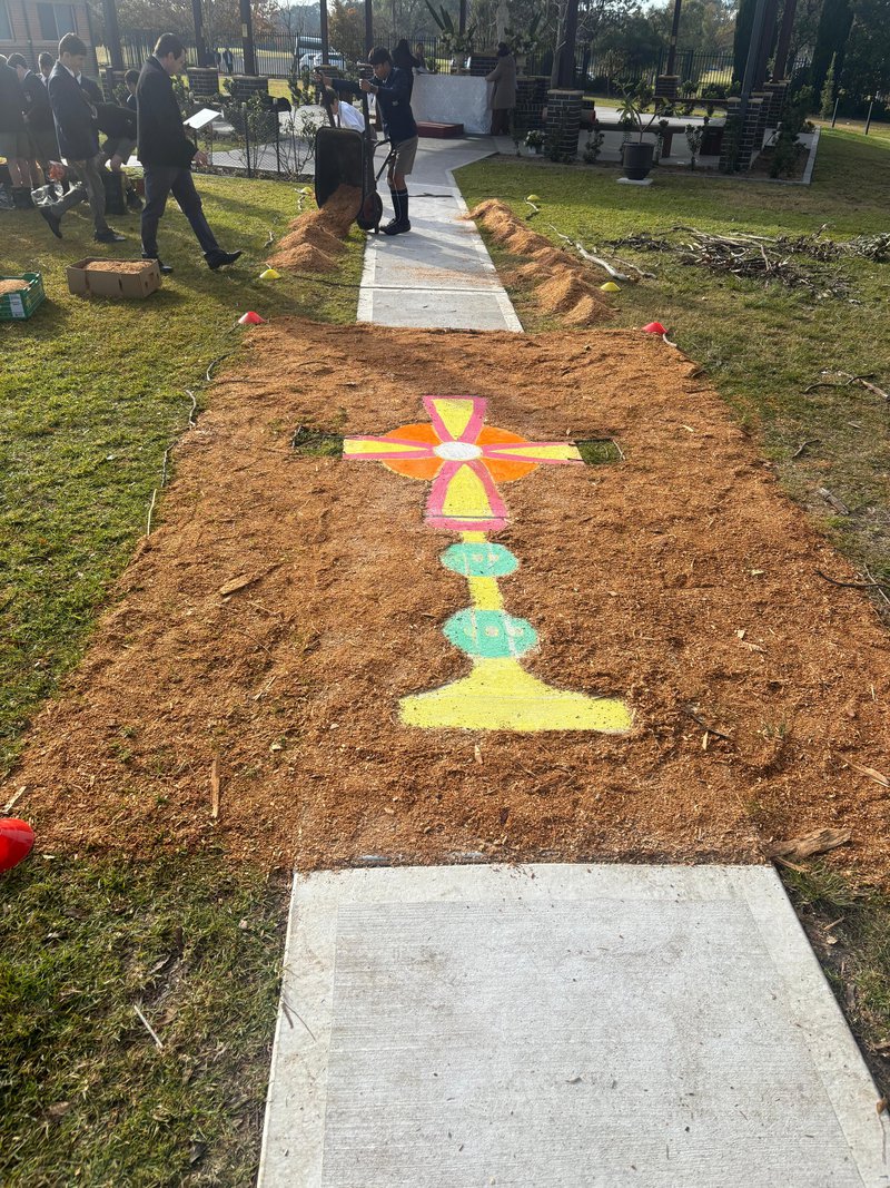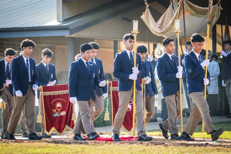 At the end of last term, we had our Annual Eucharistic Procession here at Wollemi. It was a wonderful occasion to teach our students devotion to the Blessed Sacrament. I would like to say a big thank you to all the parents and students involved. I was very moved seeing how everything came together so nicely, without lacking challenges and setbacks, but with the perseverance of many people. From the parents working on the altars from the first hour in the morning, to the boys working on the flower carpets: everyone contributed in their own way to make this day so special!