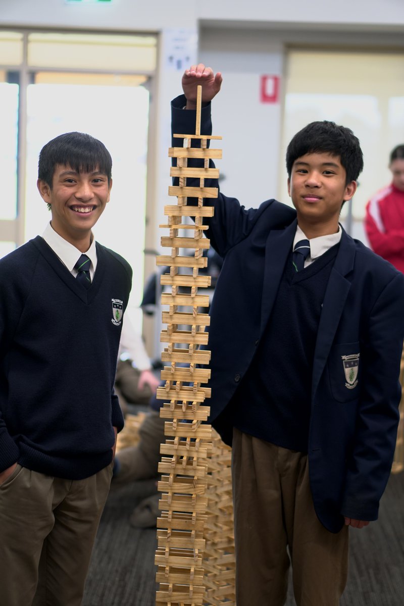 The final session gave us a chance to relax while still getting hands-on with some engineering challenges. Using wooden blocks, we worked in teams to complete creative tasks. Ramon, Noah, and Sam built a wooden block bridge with a span of 80cm, where the NSW record is 87.5cm!