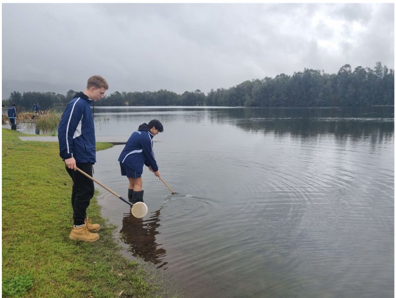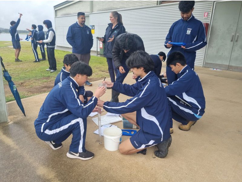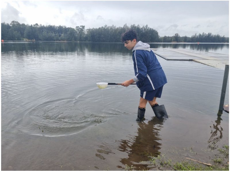 The Year 11 Biology class of 2025 travelled to the Penrith Lakes Environment Education Centre to explore the sustainable ecosystems that were recovered after being used for mining of rocks and agriculture for crops in the past. Through the downpour of rain, with the help of gumboots and excitement, we still managed to have great fun testing the quality of the water along with the many other factors that have to be kept in check for the lakes to stay healthy, including the measuring of pH levels, water temperature and many more.